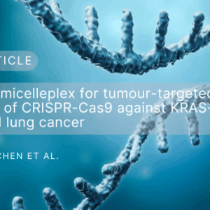 CRISPR-Cas9 has emerged as a highly effective and customizable genome editing tool, holding significant promise for the treatment of KRAS mutations in lung cancer. In this study, we introduce a novel micelleplex, named C14-PEI, designed to co-deliver Cas9 mRNA and sgRNA efficiently to excise the mutated KRAS allele in lung cancer cells. C14-PEI is synthesised from 1,2-epoxytetradecane and branched PEI 600 Da via a ring-opening reaction. The resulting C14-PEI has a critical micelle concentration (CMC) of approximately 20.86 ± 0.15 mg L−1, indicating its ability to form stable micelles at low concentrations. C14-PEI efficiently encapsulates mRNA into micelleplexes through electrostatic interactions. When the mass ratio is 8 (w/w 8), the C14-PEI formulation exhibits conducive properties, which showed encapsulation efficiency of eGFP mRNA at 99% and led to a 130-fold increase in eGFP expression in A549 cells compared to untreated cells, demonstrating the robust delivery and expression capability of the micelleplexes. Importantly, toxicity tests using intracellular reduction of a tetrazolium salt revealed no significant cytotoxicity, underscoring the biocompatibility of C14-PEI. C14-PEI also shows high efficiency in co-encapsulating Cas9 mRNA and sgRNA, as confirmed by agarose gel electrophoresis. At an sgRNA to Cas9 mRNA molar ratio of 10, the micelleplexes successfully mediate the cutting of mutated KRAS with an indel efficiency exceeding 60%, as determined by the T7 Endonuclease I (T7EI) assay. Droplet digital polymerase chain reaction (ddPCR) further demonstrates that the gene editing efficiency, measured by edited gene copies, is 48.5% in the w/w 4 group and 37.8% in the w/w 8 group. Treatment with C14-PEI micelleplexes containing Cas9 mRNA and sgRNA targeting the KRAS G12S mutation significantly impairs the migration capability of A549 cells and increases apoptosis rates. These findings suggest that C14-PEI effectively disrupts KRAS signalling pathways, leading to reduced tumor cell proliferation and enhanced cell death.